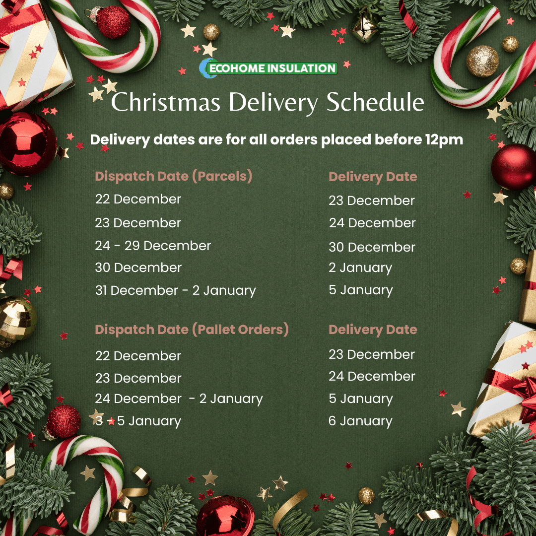 The festive season is fast approaching, and we know how important it is to receive your insulation materials on time—especially if you’re completing winter projects or preparing for work in the New Year. To help you plan, we’ve put together our Christmas Delivery Schedule for 2025, along with everything you need to know about ordering during the holiday period.